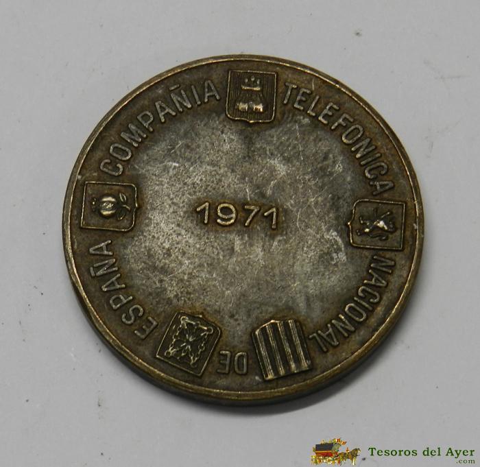 MEDALLA CONMEMORATIVA DE LA COMPAñIA TELEFONICA NACIONAL DE ESPAñA DE 1971, MUY RARA. MIDE 4 CMS DE DIAMETRO.