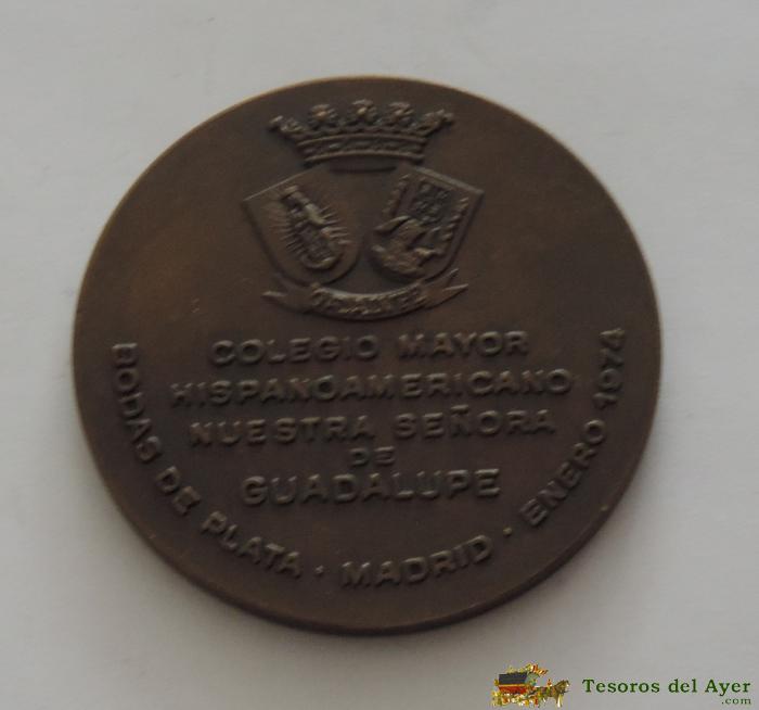 COLEGIO MAYOR NTRA. SRA. GUADALUPE. MADRID. BODAS DE PLATA. MEDALLA BRONCE CONMEMORATIVA. AñO 1974. 6 CM. DIáMETRO. BUENA CONSERVACIóN.