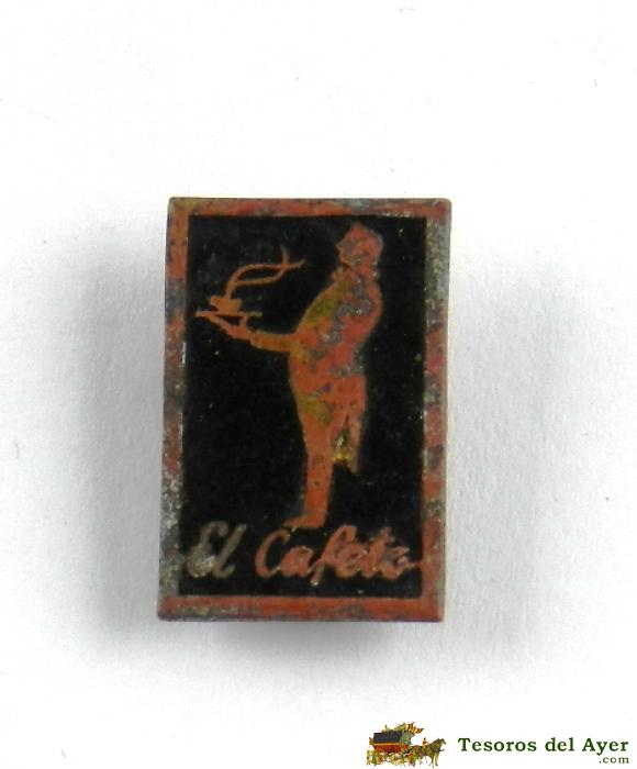 INSIGNIA DE SOLAPA ESMALTADA, PUBLICIDAD DE CAFÉS EL CAFETO, CAFÉ, MALTA, CHOCOLATES, MIDE 2 CMS.