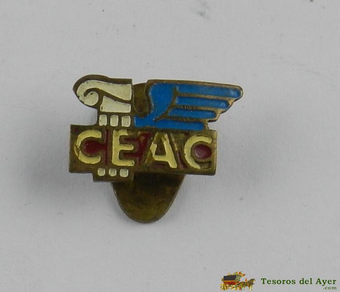 ANTIGUA INSIGNIA DE OJAL ESMALTADA, CON PUBLICIDAD DE CEAC. AÑOS 50- 60, MIDE 1,9 CMS.