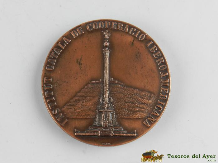 MEDALLA COMMEMORATIVA DE LINSTITUT CATALà DE COOPERACIó IBEROAMERICANA, GRABADOR PUJOL, REVERSO EXPO CATALUNYA 1980, MIDE 6 CMS.
