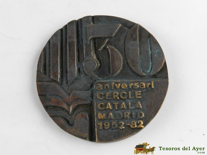 MEDALLA DEL 30 ANIVERSARI CERCLE CATALA MADRID 1952-82, CON FIRMA DE PALOAIS, MIDE 8 CMS DE DIAMETRO.
