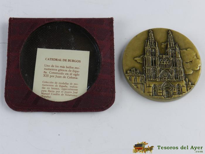 MONEDA EN BRONCE DE LA CATEDRAL DE BURGOS, COLECCIóN DE IBERIA, COLECCION DE MEDALLAS DE MONUMENTOS DE ESPAñA REALIZADAS EN BRONCE, ESPECIALMENTE PARA IBERIA POR EL JOYERO JOSé MANUEL CORDóN DE SALAMANCA, EN SU BOLSA ORIGINAL. MIDE 6 CMS DE DIAMETRO.