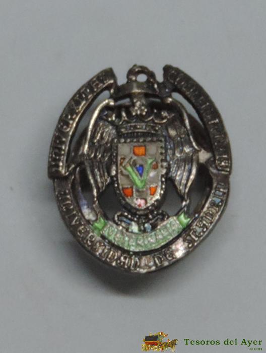 ANTIGUA MINIATURA PARA SOLAPA DE LA UNIVERSIDAD COMPLUTENSE DE MADRID, VETERINARIA - DE PLATA - MIDE 1,9 CMS.