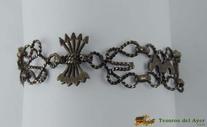 EXCEPCIONAL PULSERA DE FALANGE DE PLATA, CON YUGOS Y FLECHAS, PRECIOSA, ESTA COMPLETAMENTE CERRADA SIN SISTEMA DE APERTURA.