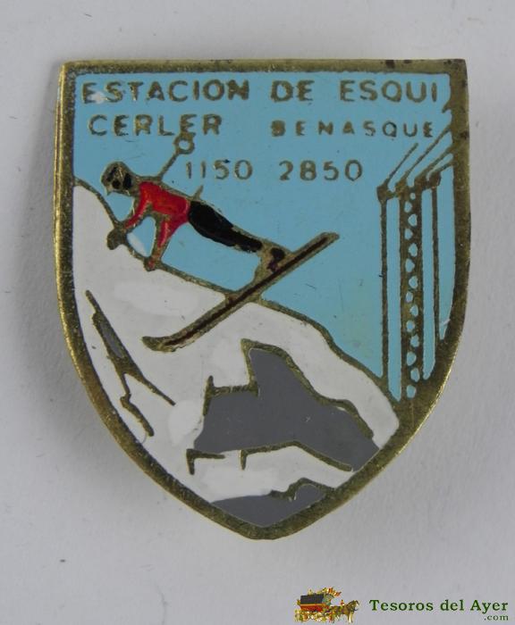 INSIGNIA DEPORTIVA ESMALTADA DE ESQUI DE CERLER, BENASQUE, SKI, MIDE 3 CMS. REVERSO CON ALFILER.