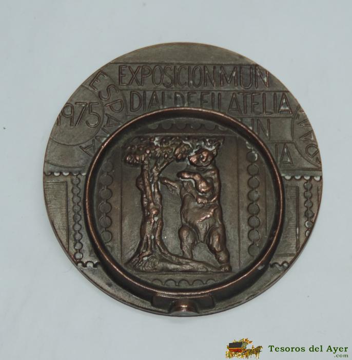 INTERESANTE MEDALLA DE LA EXPOSICION MUNDIAL DE FILATELIA - ESPAÑA, MIDE 7,5 CMS DE DIAMETRO, ES MUY GRUESA, CON RELIEVE, PESA 230 GRAMOS.