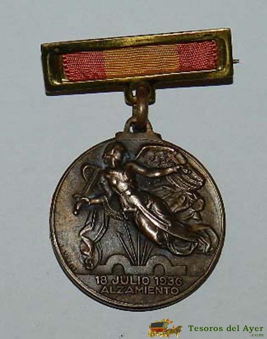 MEDALLA 18 DE JULIO. ALZAMIENTO Y VICTORIA. VARIANTE CON PASADOR CORTO. AñO 1939. METAL: COBRE. MIDE 33 MM (DE DIáMETRO). LONGITUD TOTAL CON PASADOR: 52 MM.