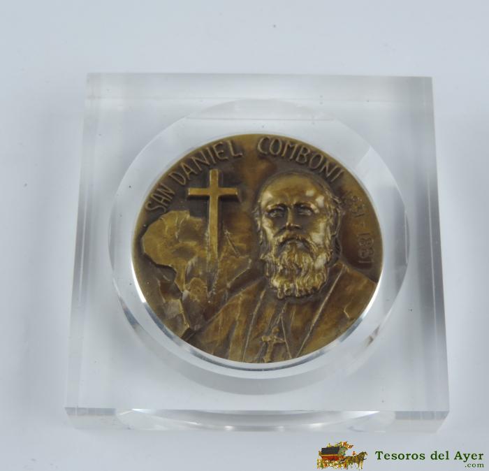 MEDALLA MEDALLÓN RELIGIOSO. SAN DANIEL COMBONI 1831 1881. MISIONERO OBISPO ÁFRICA. EN METRAQUILATO.