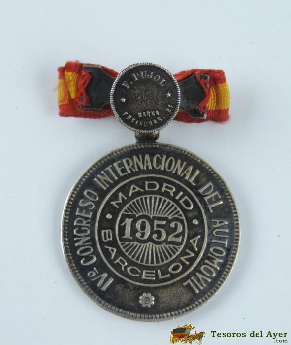 MEDALLA DE PLATA, DEL IV CONGRESO INTERNACIONAL DEL AUTOMOVIL, AÑO 1952. FISITA, F. PUJOL, BARNA. MIDE 3,5 CMS DE DIAMETRO.