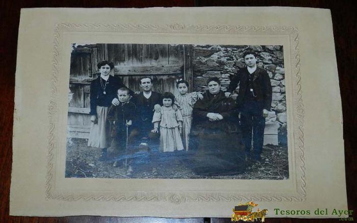 ANTIGUA FOTOGRAFIA DE FAMILIA AÑOS 1910 / 20, NIÑOS CON ESCOPETA DE JUGUETE, PARECEN DEL NORTE DE ESPAÑA, CASTILLA LEON, ASTURIAS, ETC..., MIDE 26 X 17,5 CMS.