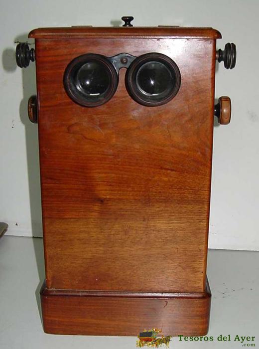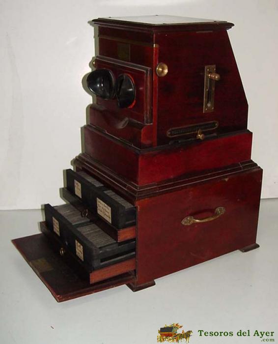 ANTIGUO APARATO ESTEREOSCOPICO, VISOR DE FOTOGRAFIAS ESTEREOSCOPICAS DE CRISTAL - APARATO ESTEREOSCOPICO DE MADERA . SIGLO XIX PRINCIPIOS DEL XX . STEREOSCOPE PHOTOS, MIDE 43 X 25 X 24 CMS. AUTOMATICAMENTE PASA LAS FOTOGRAFIAS ESTEREOSCOPICAS DE CRISTAL D