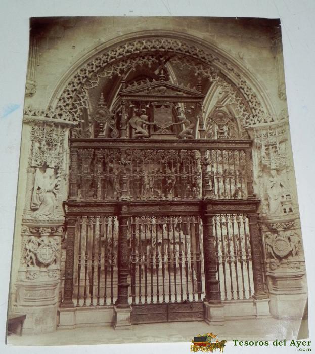 ANTIGUA FOTOGRAFIA ALBUMINA DE BURGOS, INTERIOR DE LA CATEDRAL, PUERTA Y REJA DE LA CAPILLA DEL CONDESTABLE, LEóN & LEVY 956 - MIDE 28 X 22 CMS.