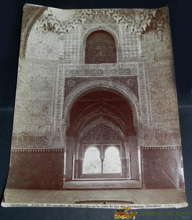ANTIGUA FOTOGRAFIA ALBUMINA DE GRANADA - 552 BIS J.LAURENT - EL MIRADOR DE LINDARAJA EN LA SALA DE LAS DOS HERMANAS (ALHAMBRA) - MIDE 34 X 25 CMS. TAL COMO SE VE.