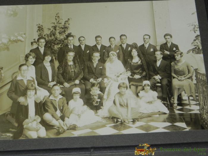ANTIGUA FOTOGRAFIA ALBUMINA DE LA FAMILIA SAINZ Y FAMILIA CASO, EN MEXICO EL 29 DE JUNIO DE 1929, DESCENDIENTES DE JOSE SAINZ DE LAS BARCENAS NATURAL DE FRESNEDO, SANTANDER, SOCIO DE CERVEZAS MODELO EN MEXICO, REVERSO ESCRITO CON LOS NOMBRES Y APELLIDOS D