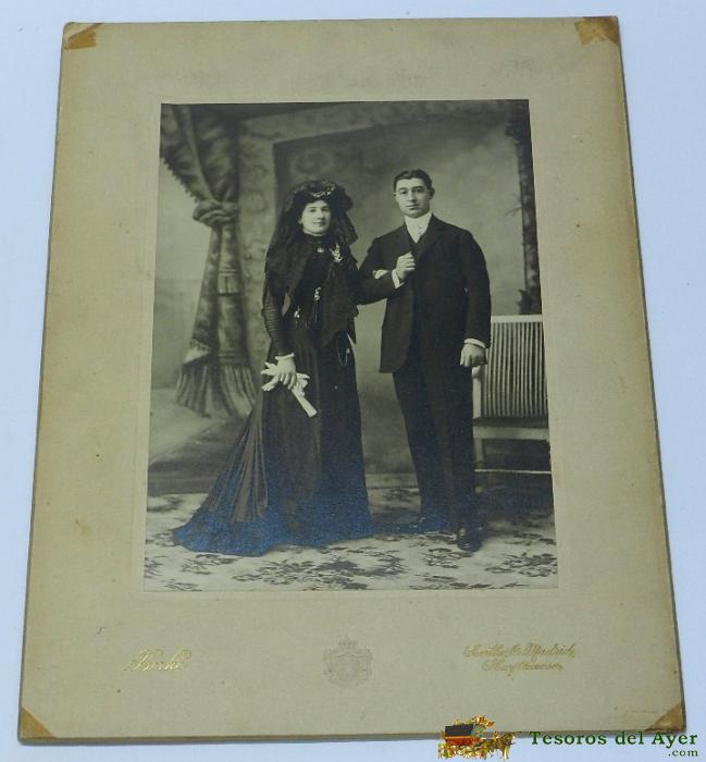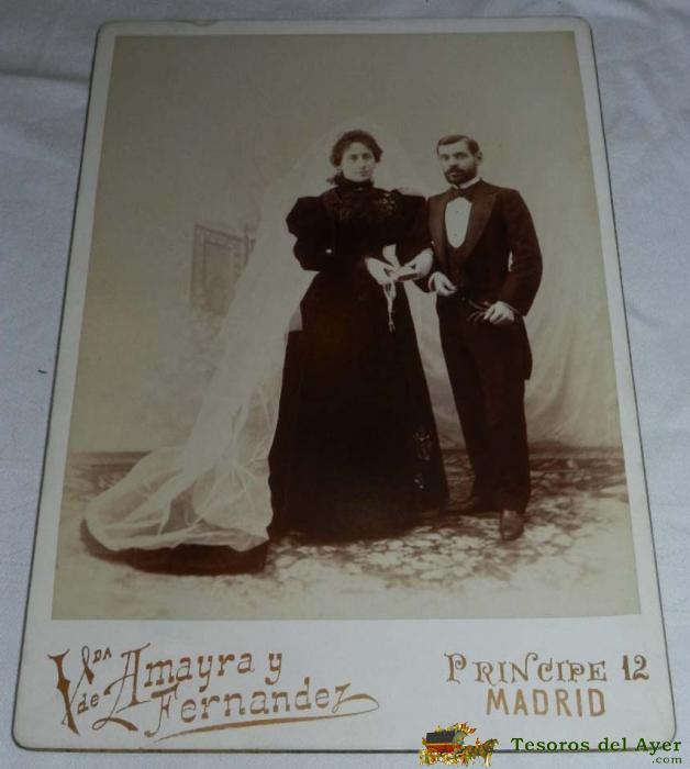 ANTIGUA FOTOGRAFIA ALBUMINA DE BODA, FOTOGRAFIA DE VIUDA DE AMAYRA Y FERNANDEZ, CALLE PRINCIPE 12 DE MADRID, MUY GRANDE, FINALES SIGLO XIX, MIDE 25 X 17 CMS.