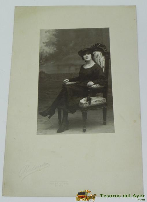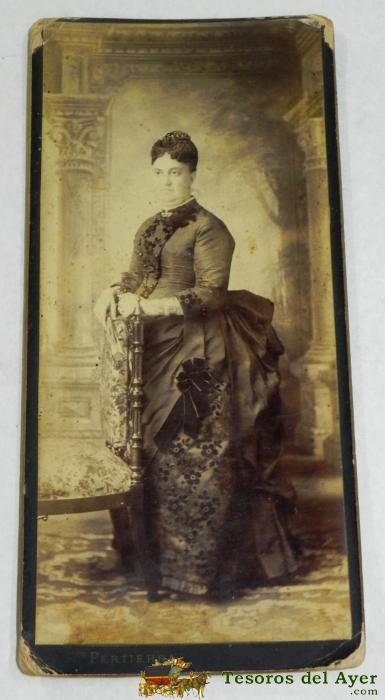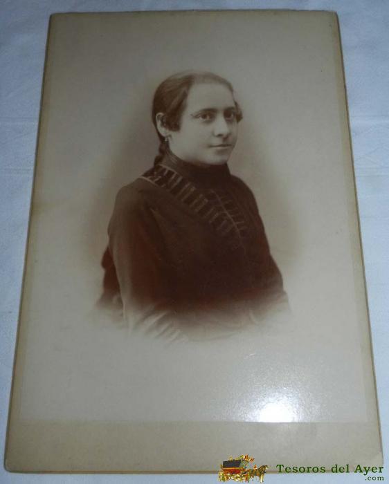 ANTIGUA FOTOGRAFIA ALBUMINA DE MUJER, MUY GRANDE, FINALES SIGLO XIX, MIDE 25,5 X 17,5 CMS. NO HAY REFERENCIA MAS.