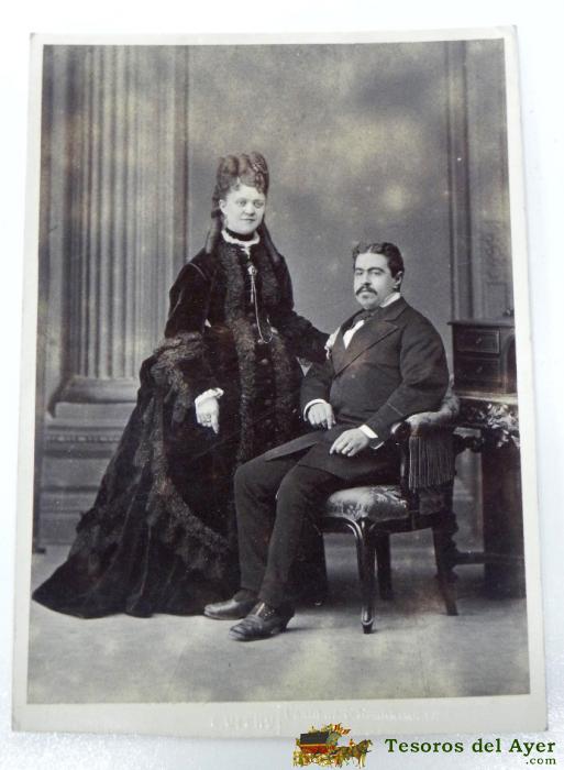 ANTIGUA FOTOGRAFIA ALBUMINADE PAREJA DE LA ARISTOCRACIA MADRILEÑA, FOTO BORKE, MADRID, MIDE 31,5 X 24 CMS.