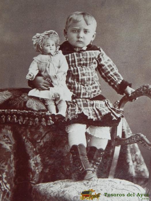 FOTOGRAFIA ALBUMINA DE NIÑA CON MUÑECA DE PORCELANA DE BOCA CERRADA, FINALES DEL SIGLO XIX PRINCIPIOS DEL XX, FOTOGRAFIA DE M. ALVIACH, PUERTA DEL SOL 14 DE MADRID, EXCELENTE, MIDE 16 X 11 CMS.