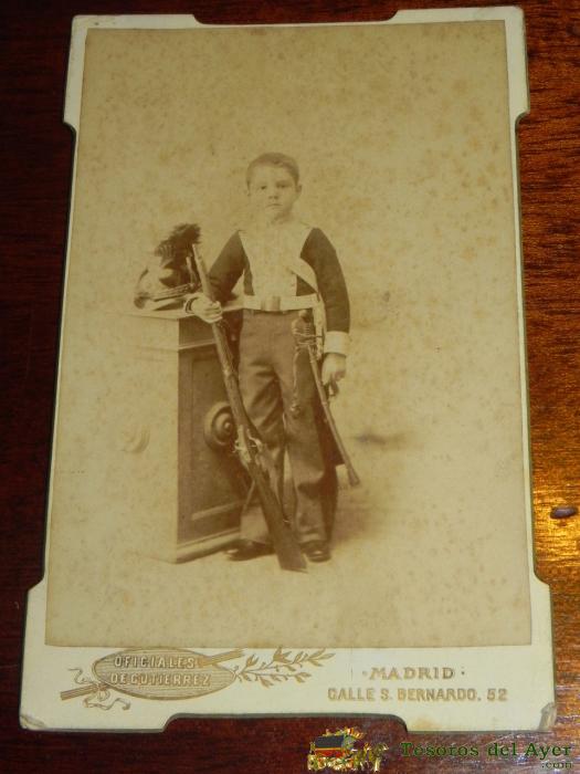 ANTIGUA FOTOGRAFIA ALBUMINA DE NIÑO VESTIDO DE MILITAR, FOTOGRAFIA OFICIALES DE GUTIERREZ, CALLE ANCHA 52 DE MADRID, CALLE SAN BERNARDO 52, MIDE 16,7 X 10,7 CMS.