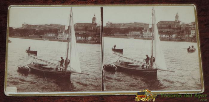 ANTIGUA FOTOGRAFIA ESTEREOSCOPICA, ALBUMINA DE LUGAR NO LOCALIZADO, MIDE 16,5 X 8,3 CMS.