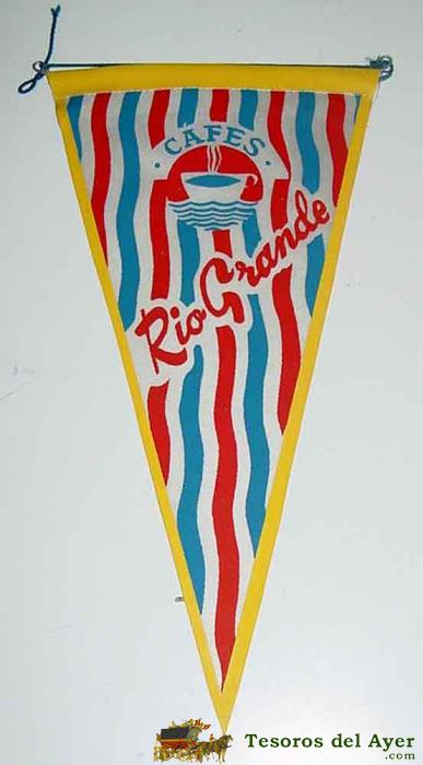 ANTIGUO BANDERIN DE TELA CON PUBLICIDAD DE CAFES RIO GRANDE - MIDE 26 X 15 CMS.