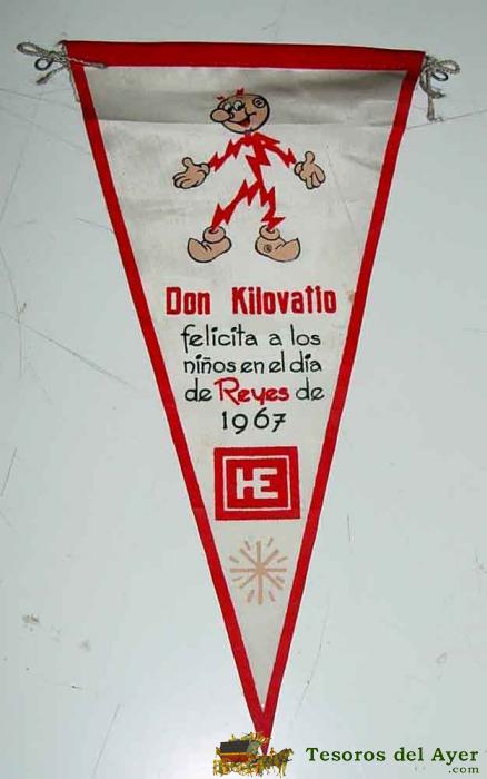 ANTIGUO BANDERIN CON PUBLICIDAD DE LA HIDROELECTRICA ESPAÑOLA - DON KILOVATIO FELICITA EN EL DIA DE REYES DE 1967 - DE TELA MIDE 26 CMS DE LONGITUD.