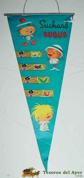 ANTIGUO BANDERIN CON PUBLICIDAD DE SUCHARD, CARAMELOS SUGUS - DE PAPEL - MIDE 32 CMS. DE LONGITUD