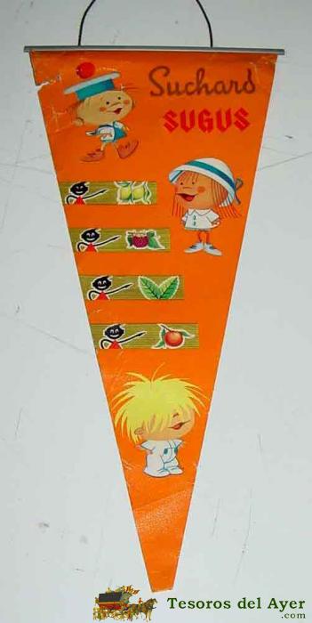 ANTIGUO BANDERIN CON PUBLICIDAD DE SUCHARD, CARAMELOS SUGUS - DE PAPEL - MIDE 32 CMS. DE LONGITUD - ALGUN DESPERFECTO
