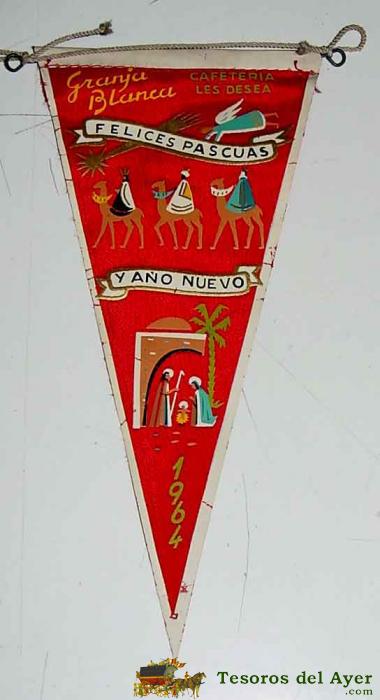 ANTIGUO BANDERIN CON PUBLICIDAD DE GRANJA BLANCA, CAFETERIA 1964 - MIDE 21 CMS. DE LONGITUD - TELA