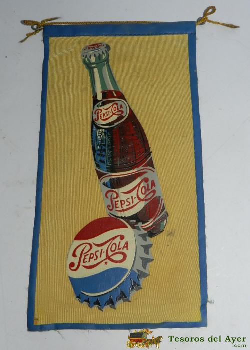 ANTIGUO BANDERIN CON PÙBLICIDAD DE PEPSI COLA - AÑOS 50 - 60 - EXCELENTE ESTADO DE CONSERVACION, MIDE 19 X 10 CMS.