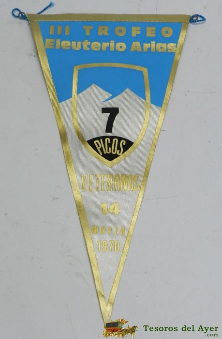BANDERIN III TROFEO ELEUTERIO ARIAS PARA VETERANOS, NAVACERRADA 1970, SIERRA GUADARRAMA, SKI, ALPINISMO, MONTAÑISMO, MIDE 27,5 CMS,