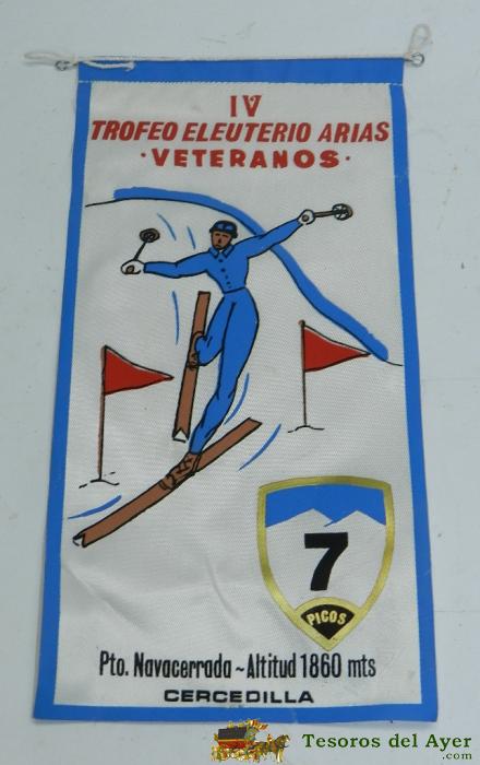 BANDERIN IV TROFEO ELEUTERIO ARIAS PARA VETERANOS, PTO. NAVACERRADA, CERCEDILLA, 1970, SIERRA GUADARRAMA, 7 PICOS, SKI, ALPINISMO, MONTAÑISMO, MIDE 28 CMS.
