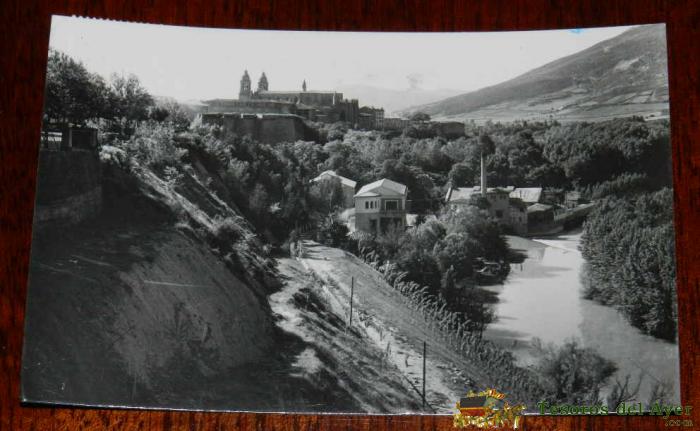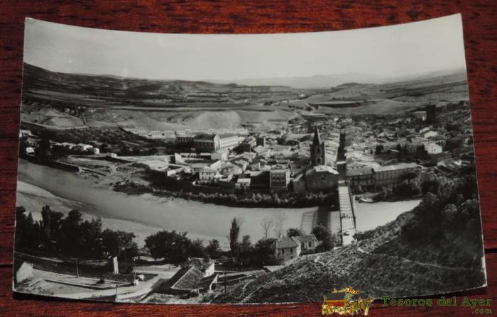 FOTO POSTAL DE SANGUESA, NAVARRA, N. 10, VISTA GENERAL Y PUENTE SOBRE EL RIO ARAGON, CIRCULADA, ES. SICILIA.