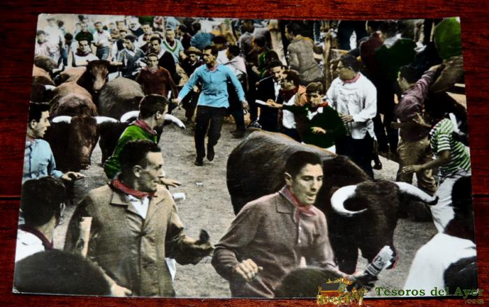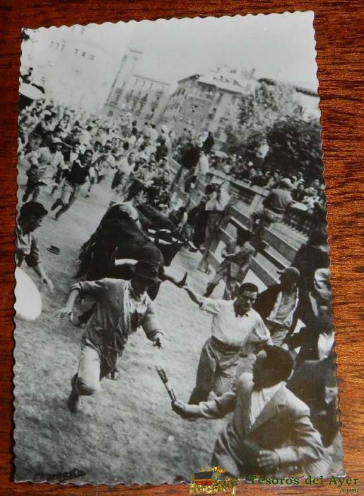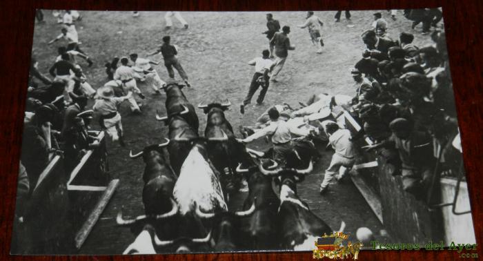 ANTIGUA FOTO POSTAL DE PAMPLONA, ENCIERROS DE SAN FERMIN, EXCELENTE, ED. VAQUERO 101, SIN CIRCULAR