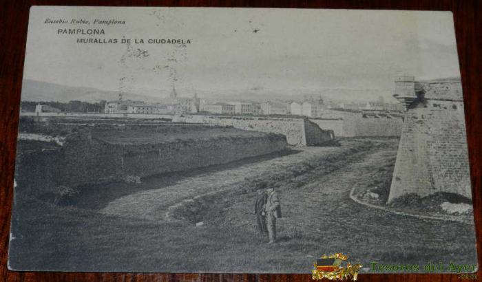 ANTIGUA POSTAL DE PAMPLONA, MURALLAS DE LA CIUDADELA, PROPIEDAD EUSEBIO RUBIO, ED. HAUSER Y MENET, CIRCULADA.