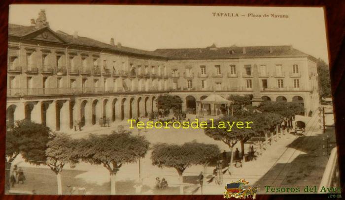 ANTIGUA POSTAL DE TAFALLA (NAVARRA), PLAZA DE NAVARRA, EJG, COMMERCIO, VDA DE J. ABAURREA, SIN CIRCULAR