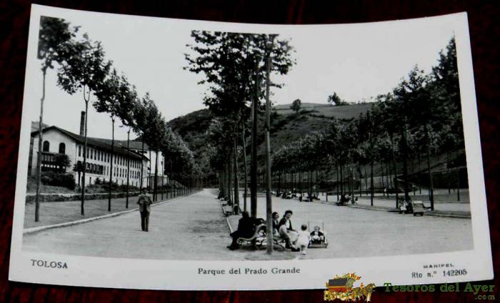 ANTIGUA FOTO POSTAL DE TOLOSA, NAVARRA, PARQUE DEL PRADO GRANDE, ED. MANIPEL, NO CIRCULADA.