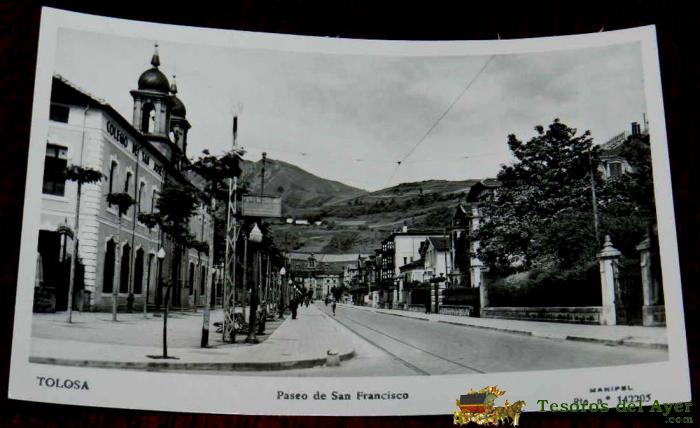 ANTIGUA FOTO POSTAL DE TOLOSA, NAVARRA, PASEO DE SAN FRANCISCO, ED. MANIPEL, NO CIRCULADA.
