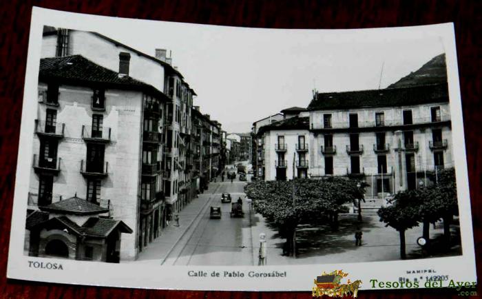 ANTIGUA FOTO POSTAL DE TOLOSA, NAVARRA, CALLE DE PABLO GOROSABEL, ED. MANIPEL, NO CIRCULADA.