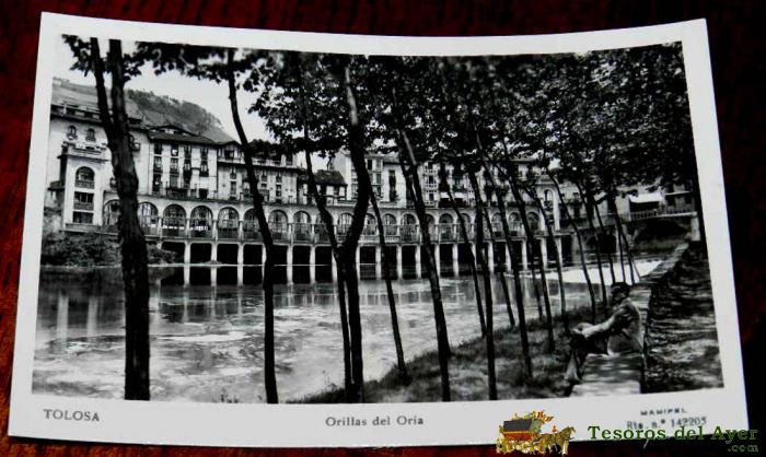 ANTIGUA FOTO POSTAL DE TOLOSA, NAVARRA, ORILLAS DEL ORIA, ED. MANIPEL, NO CIRCULADA.