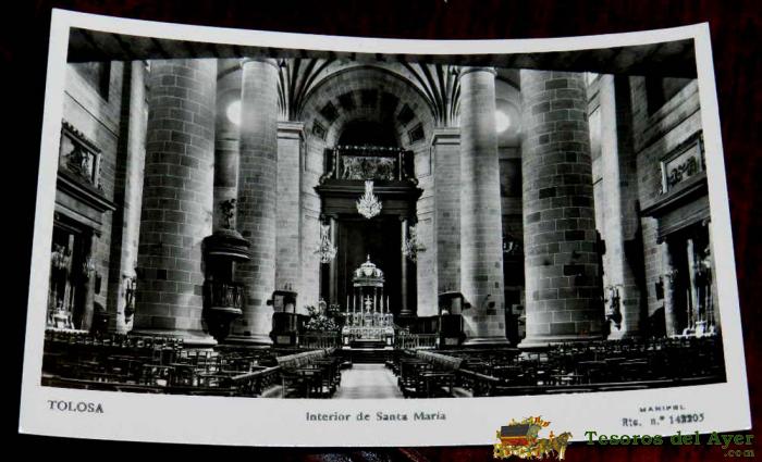 ANTIGUA FOTO POSTAL DE TOLOSA, NAVARRA, INTERIOR DE SANTA MARIA, ED. MANIPEL, NO CIRCULADA.