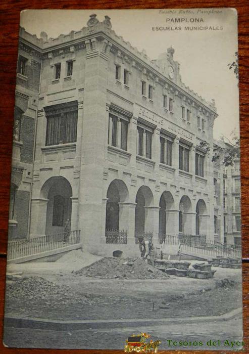 ANTIGUA POSTAL DE PAMPLONA, ESCUELAS MUNICIPALES, EUSEBIO RUBIO, PAMPLONA, ED. HAUSER Y MENET, NO CIRCULADA