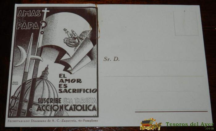 ANTIGUA POSTAL DE ACCION CATOLICA, ED. SECRETARIADO DIOCESANO, PAMPLONA, NO CIRCULADA, ESCRITA POR EL REVERSO EN 1939.