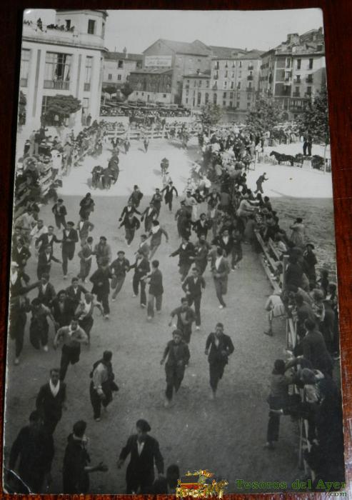 ANTIGUA FOTO POSTAL DE PAMPLONA, ENCIERROS DE SAN FERMIN, NO CIRCULADA.