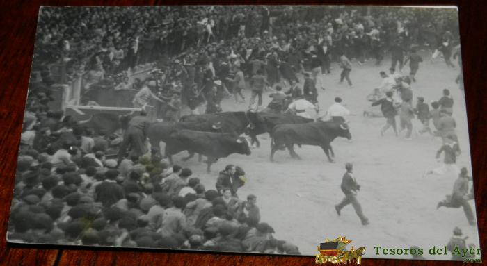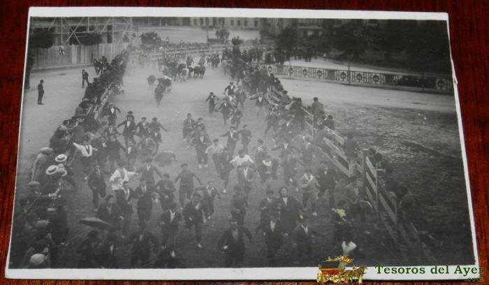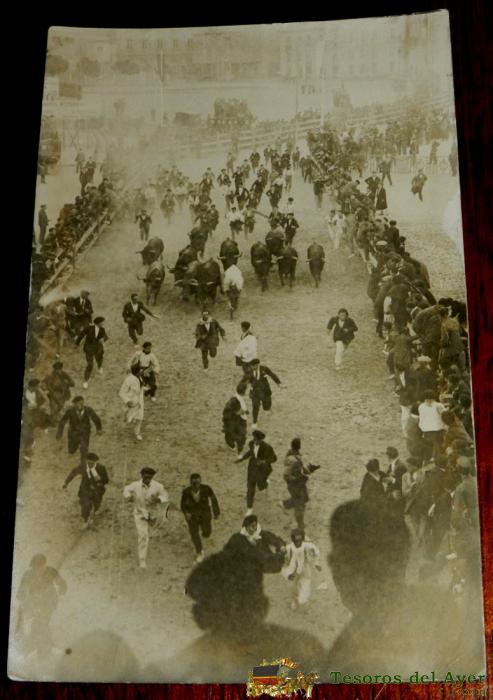 ANTIGUA FOTO POSTAL DE PAMPLONA, CORRIDA DE TOOS, DE LOS ENCIERROS DE SAN FERMIN, AÑOS 20, EXCELENTE, SIN CIRCULAR