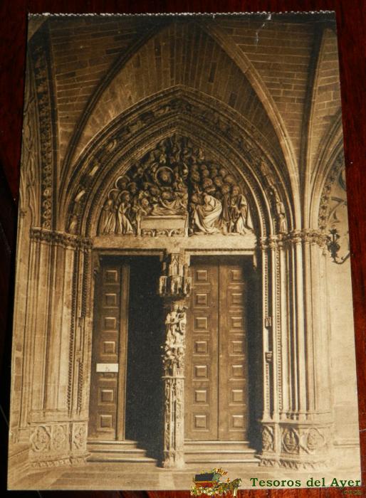 ANTIGUA POSTAL DE PAMPLONA, N. 9, CATEDRAL, PUERTA DE LA VIRGEN, ED. L. ROISIN, NO CIRCULADA.