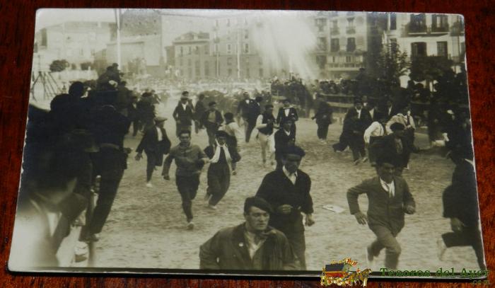 ANTIGUA FOTOGRAFIA DE PAMPLONA, ENCIERROS DE SAN FERMIN, AÑOS 20 EXCELENTE, FOTOGRAFIA RUPEREZ, TAMAÑO POSTAL, SIN CIRCULAR