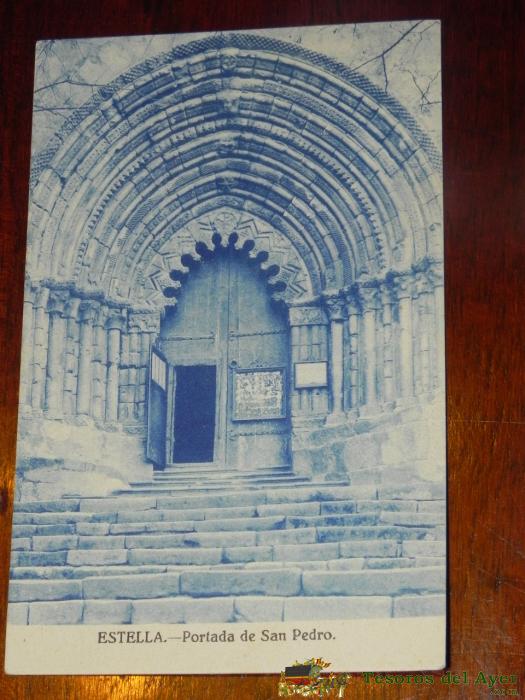 ANTIGUA FOTO POSTAL DE ESTELLA, NAVARRA, PORTADA DE SAN PEDRO, NO PONE EDITORIAL, NO CIRCULADA.