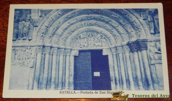 ANTIGUA FOTO POSTAL DE ESTELLA, NAVARRA, PORTADA DE SAN MIGUEL, NO PONE EDITORIAL, NO CIRCULADA.